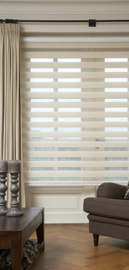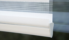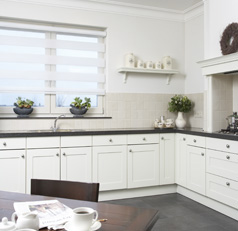 De MULTISHADE is een uniek, exclusief en innovatief produkt, dat zowel in de klassieke als trendy interieurs thuis hoort. De multishade is een product opgebouwd uit twee lagen stof, bestaande uit transparant en niet transparant banen. Met behulp van een kettingbediening kan de multishade in elk gewenste stand geplaatst worden. Wilt u geheel gesloten, half open of open, de keus is aan u. Standaard wordt de multishade afgewerkt in een wit gemoffelde Bovenbakafwerking, optioneel is de kleur van alluminium.